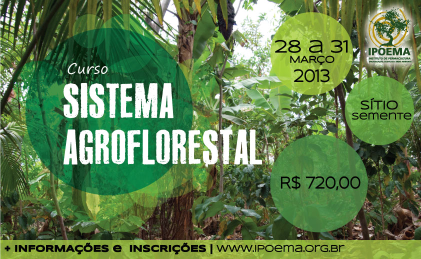 Da divulgação do curso: Promoção “Casadinho” – dois cursos por um valor especial! Curso de Sistemas Agroflorestais + Curso Avançado de Sistemas Agroflorestais com Ernst Götsch O valor dos cursos inclui a alimentação com produtos orgânicos colhidos nas nossas agroflorestas (café da manhã, lanches, almoço e jantar) e disponibilizamos uma